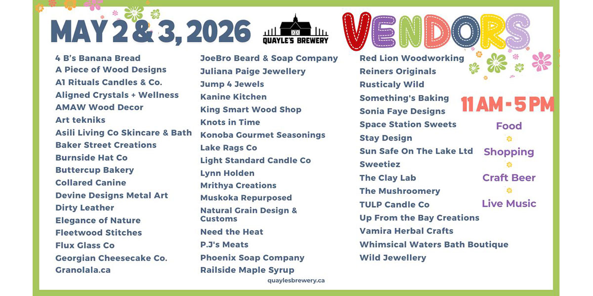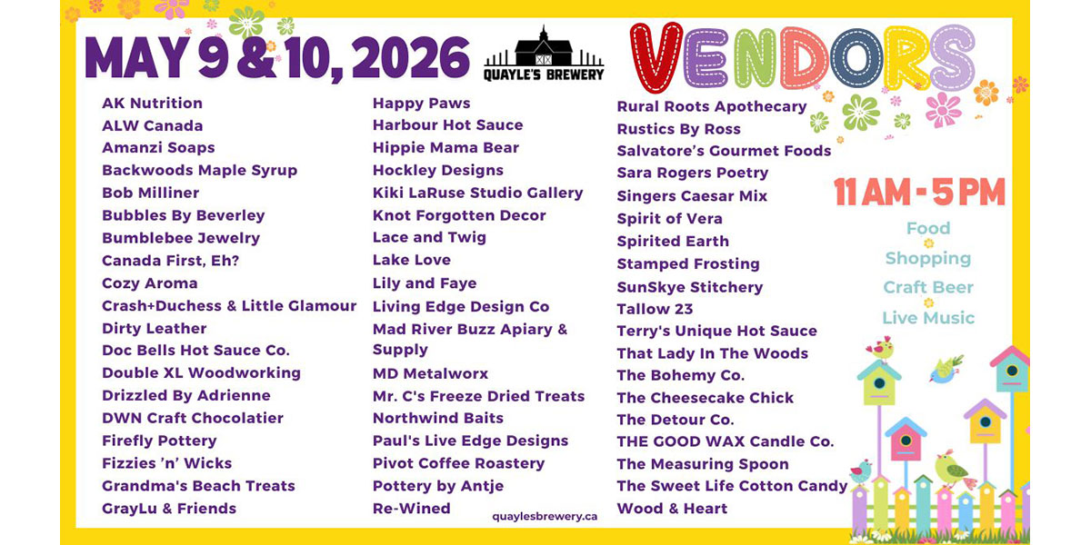 | L0K 1E0 | Wednesday | 12pm – 3:00 pm Cans-to-go only |