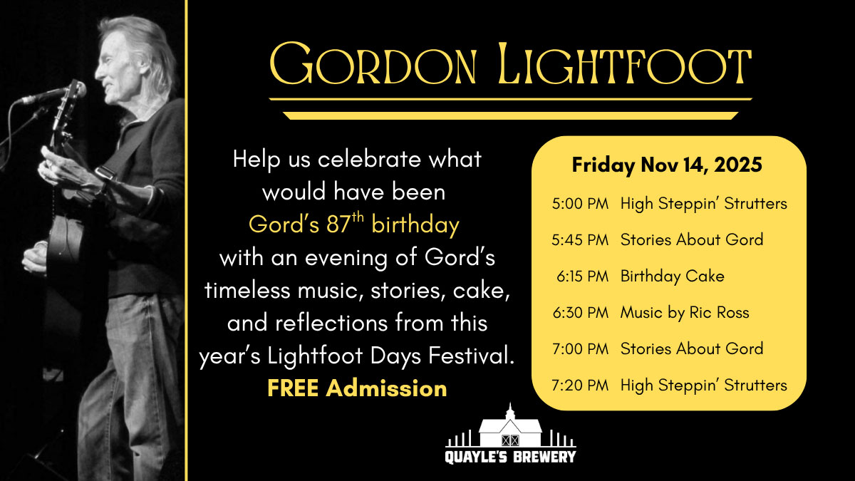 Quayle's Brewery 4567 12 Line N, Coldwater, Ontario, CanadaFri November 7 5-8 Gen Cyr