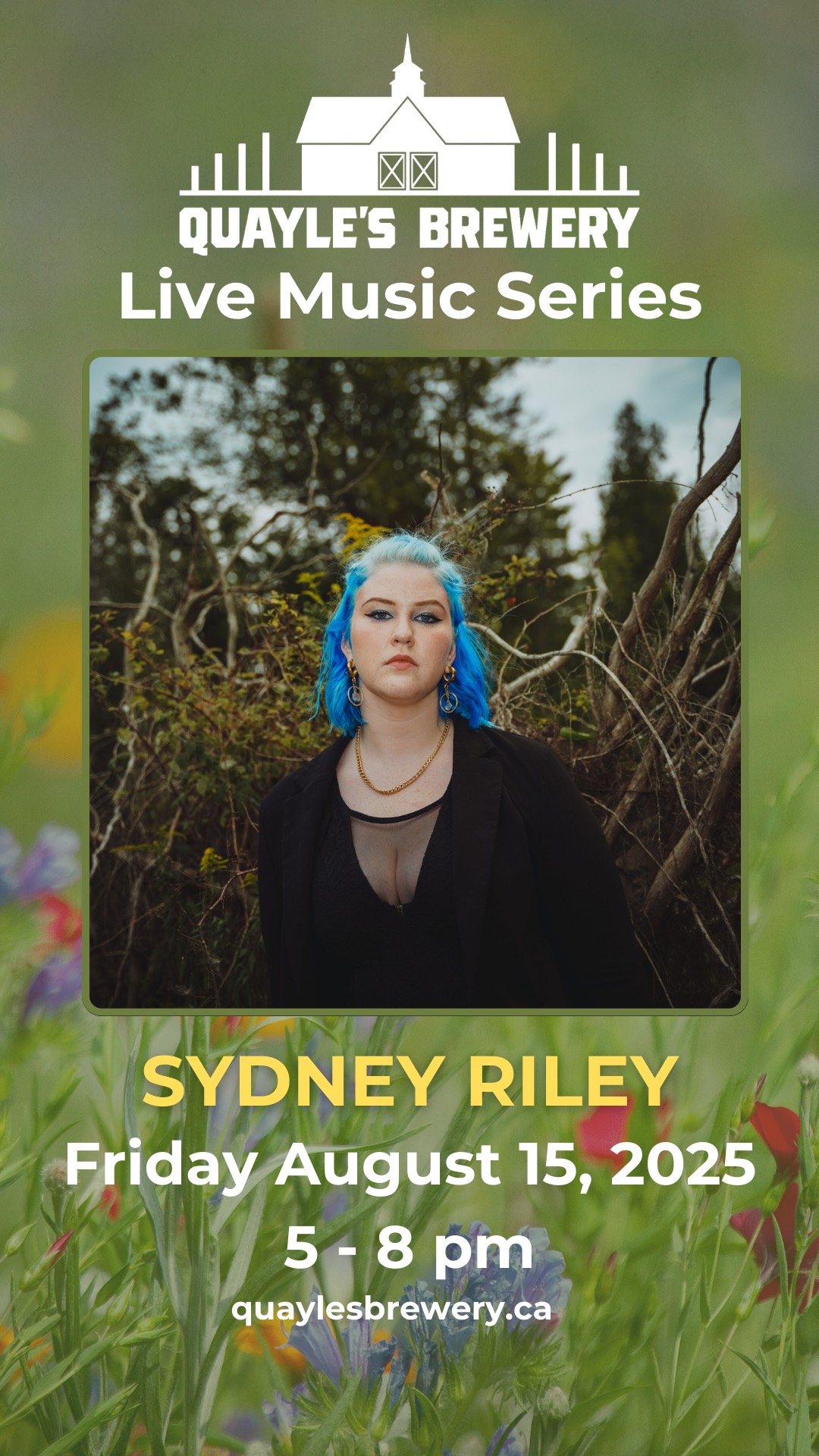 Quayle's Brewery 4567 12 Line N, Coldwater, Ontario, CanadaFri August 15 5-8 Sydney Riley